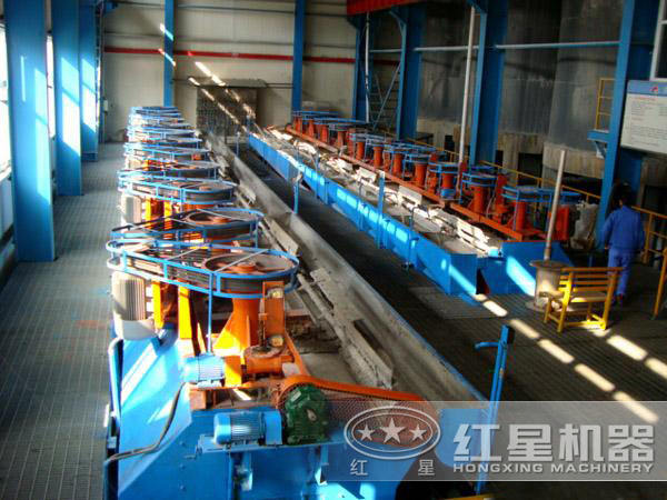 經過磁選機初步分離后的礦物顆粒在被送入浮選機,根據不同的礦物特性加入不同的藥物,使得 所要的礦物質與其他物質分離開。在所要的礦物質被分離出來后,因其含有大量水分,須經濃縮機的初步濃縮,再經烘干機烘干,即可得到干燥的礦物。